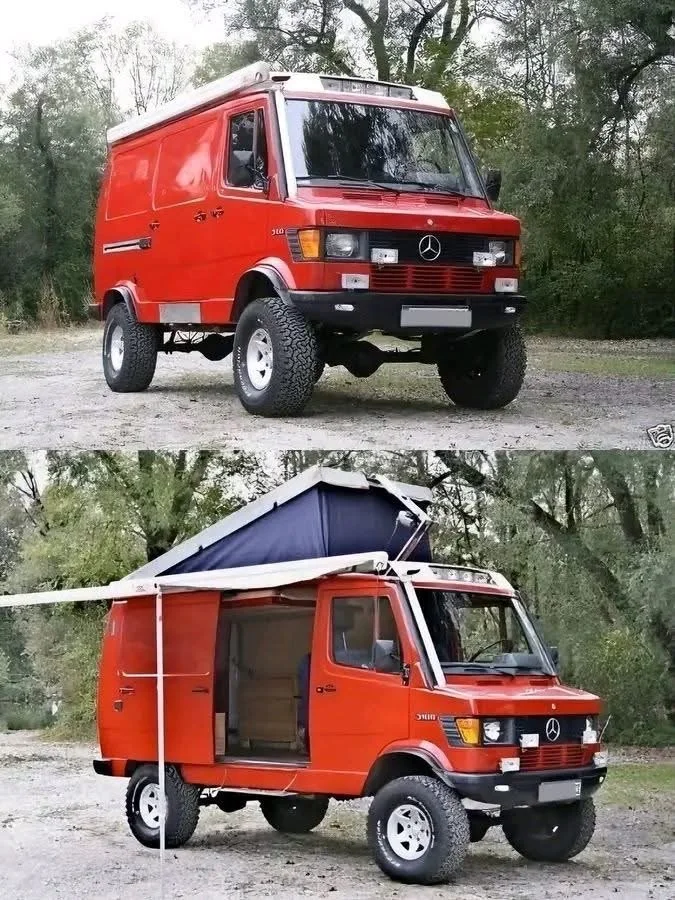 What a ride. We stumbled across this vintage Mercedes Benz 310 T1 4x4 custom pop-top overland build and are completely obsessed with it.