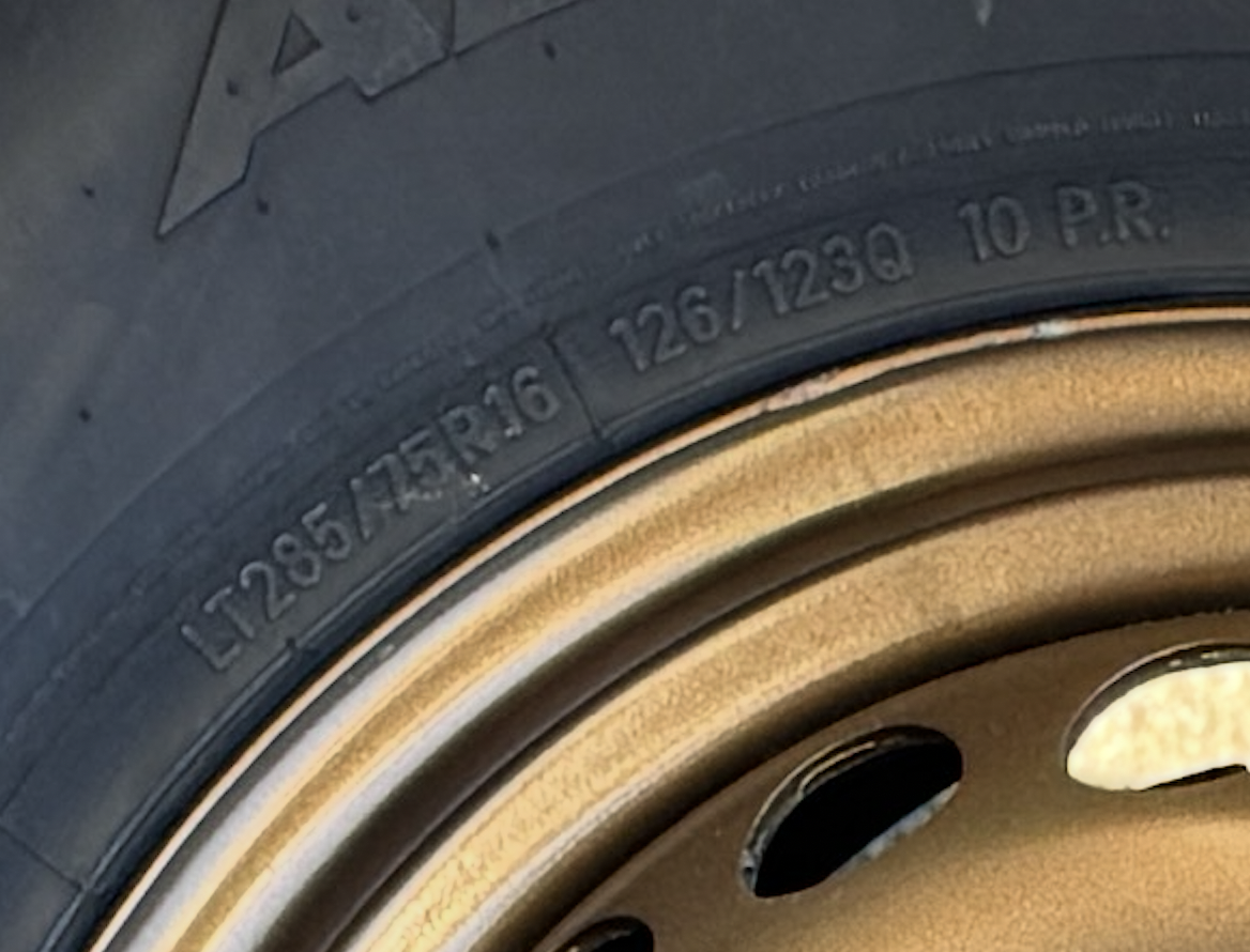 The load capacity was something we really liked here: 126/123 are the load index numbers on our tires showing we can can carry a max load up to 3,969 lbs (1,800 kgs) per tires. That’s 15,876 lbs. (7,197 kg). So if you’re a heavy build with a lot of water, fuel and batteries on board or wanting to tow, this rating is what you’re looking for.