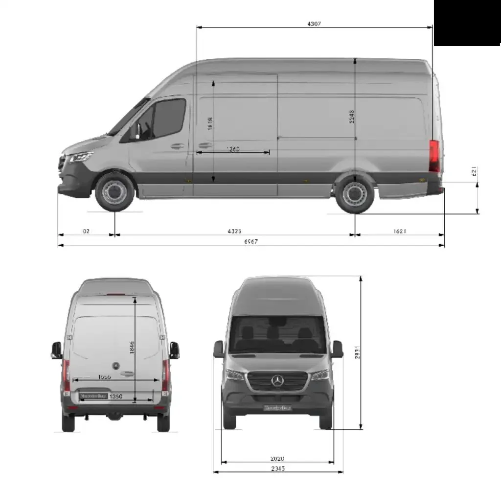 The largest Sprinter Van (The L4) in a 2WD has a total: